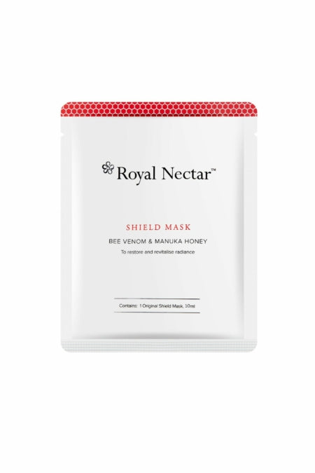 Royal Nectar Shield Mask contains our famous Nectar Ease™, a blend of Bee Venom and Active Manuka Honey, to stimulate the skin providing an immediate anti-aging effect. Bee Venom tightens and plumps while the active Manuka Honey nourishes and protects the skin.